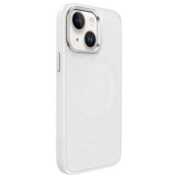 For iPhone 14 Wave Texture Liquid Silicone Titanium MagSafe Phone Case(White)