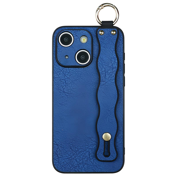 For iPhone 14 Wavy Wristband Bracket TPU Phone Case(Blue)
