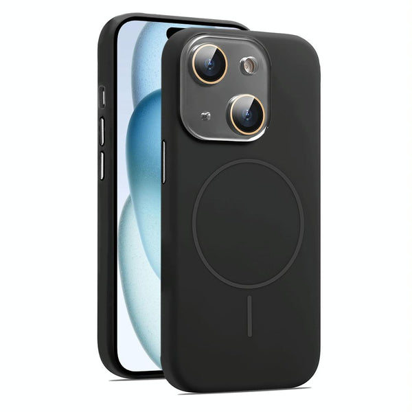 For iPhone 15 AG Fine Hole Liquid Silicone MagSafe Magnetic Phone Case(Black)