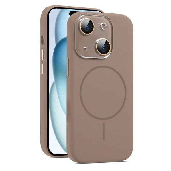 For iPhone 15 AG Fine Hole Liquid Silicone MagSafe Magnetic Phone Case(Brown)