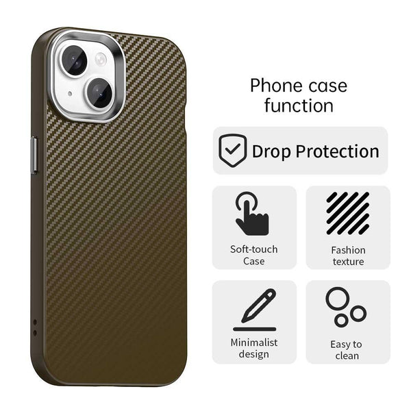 For iPhone 15 Carbon Fiber Series IMD Phone Case(Brown)
