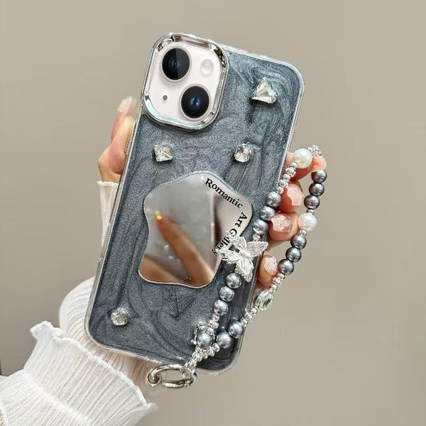 For iPhone 15 Cream Mirror Bracelet Chain TPU Phone Case(Silver Gray)