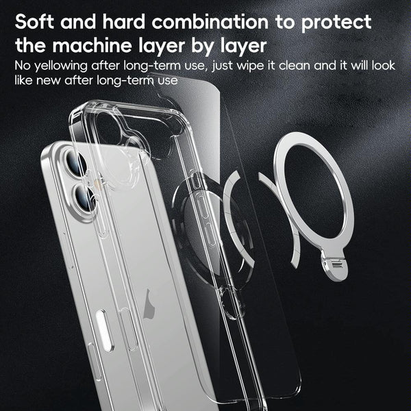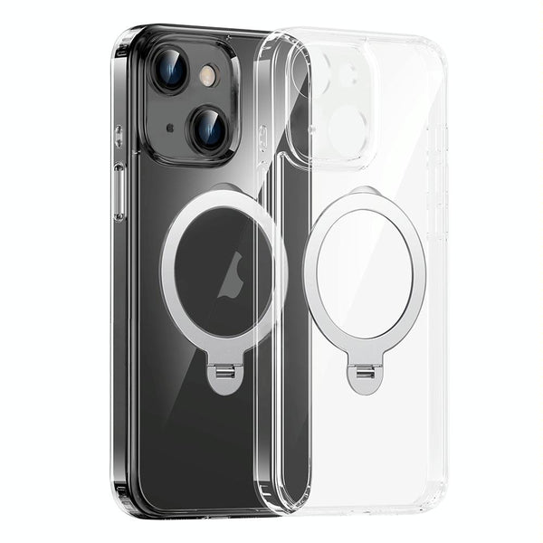 For iPhone 15 Fine Hole 360 Degree Rotating Holder MagSafe Phone Case(Transparent)