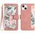 For iPhone 15 Floral Pattern Leather Phone Case with Lanyard(Pink)