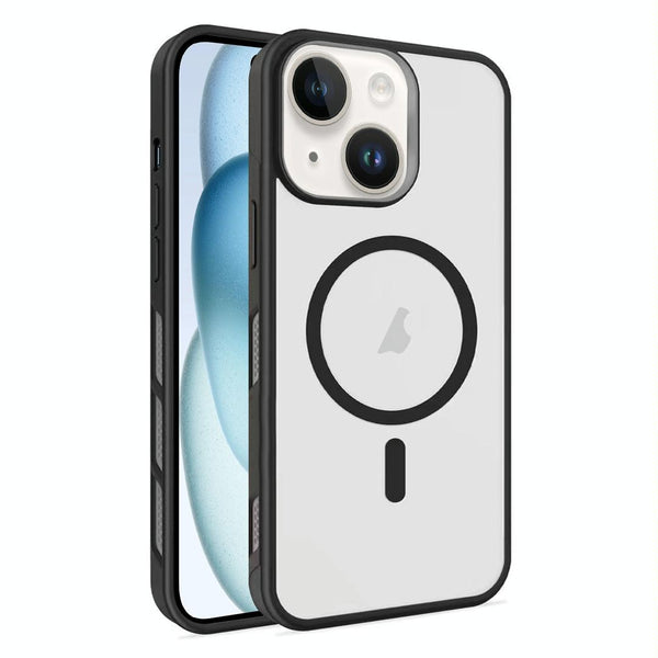 For iPhone 15 Frosted Translucent Side Ice Fog Cooling MagSafe Phone Case(Black)
