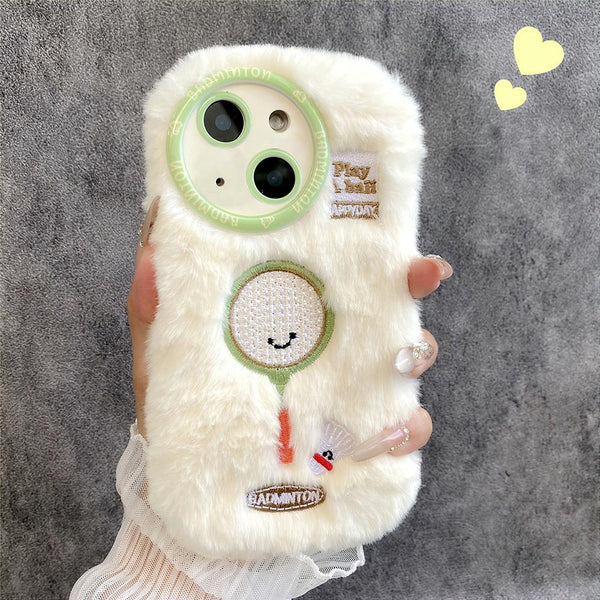 For iPhone 15 Fun Sports Plush Silicone Phone Case(Badminton)