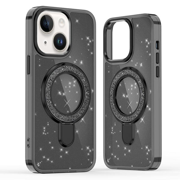 For iPhone 15 Glitter Ring Holder MagSafe Phone Case(Black)