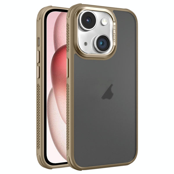 For iPhone 15 Hardware Side Cooling Skin Feel Frosted Metal Lens Frame Phone Case(Gold)