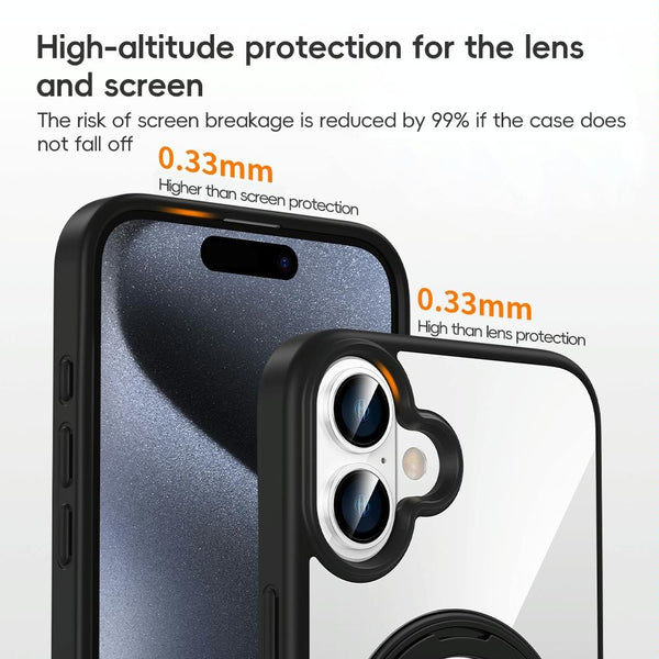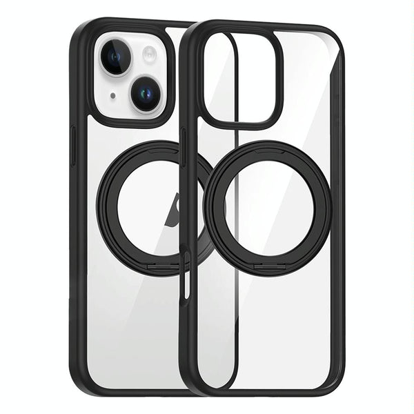 For iPhone 15 High Transparency 360 Degree Rotating Holder MagSafe Phone Case(Black)