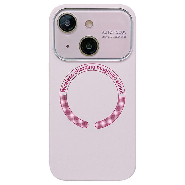For iPhone 15 Large Window Acrylic Glass Lens MagSafe Silicone Phone Case(Ash Powder)