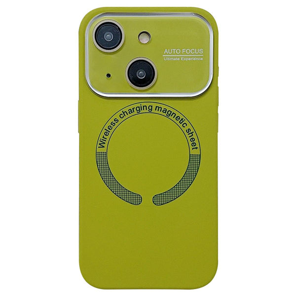 For iPhone 15 Large Window Acrylic Glass Lens MagSafe Silicone Phone Case(Willow Green)