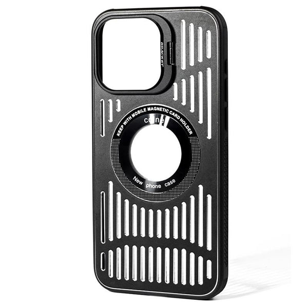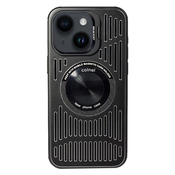 For iPhone 15 Lens Bracket Metal Heat Dissipation MagSafe Phone Case(Black)