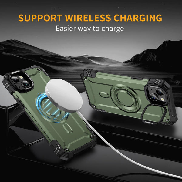 For iPhone 15 Lens Holder MagSafe Phone Case(Army Green)