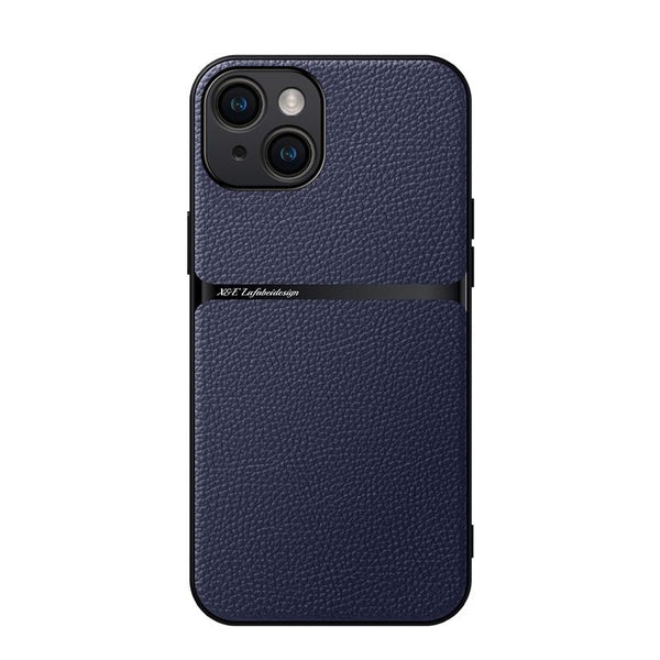 For iPhone 15 Litchi Leather Magnetic Full Coverage Shockproof Phone Case(Navy Blue)