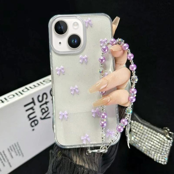 For iPhone 15 Little Fresh Bow Bracelet Chain TPU Phone Case(Purple)