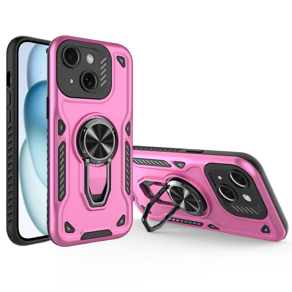 For iPhone 15 Metal Rotating Bracket TPU + PC Magnetic Phone Case(Pink Purple)