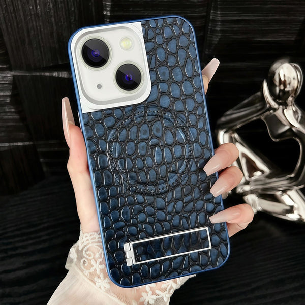 For iPhone 15 Pebble Pattern PU MagSafe Phone Case with Holder(Blue)