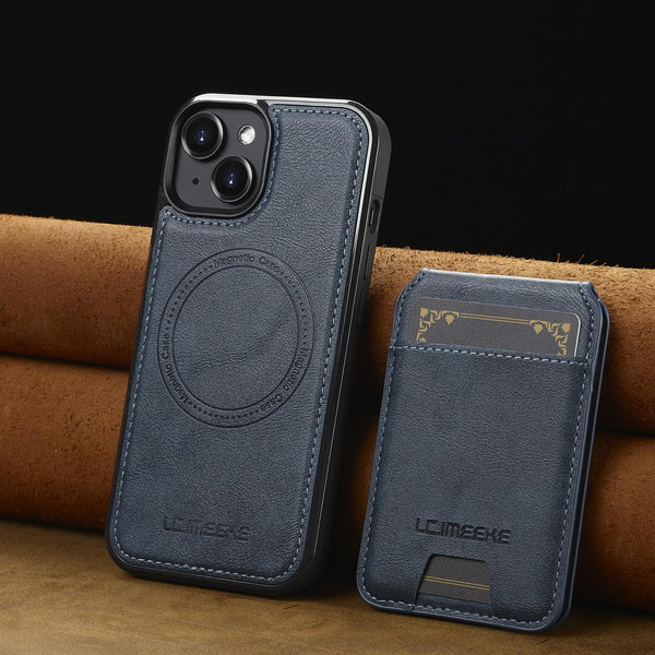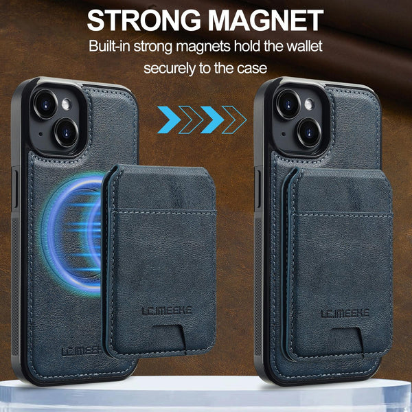 For iPhone 15 Plus / 14 Plus LC.IMEEKE L3 Series Detachable RFID Card Bag Magsafe Phone Case(Blue)