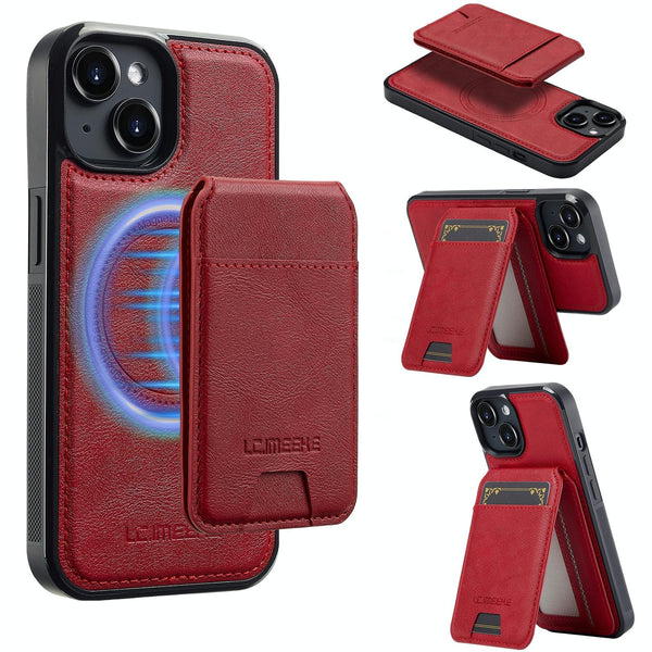 For iPhone 15 Plus / 14 Plus LC.IMEEKE L3 Series Detachable RFID Card Bag Magsafe Phone Case(Red)
