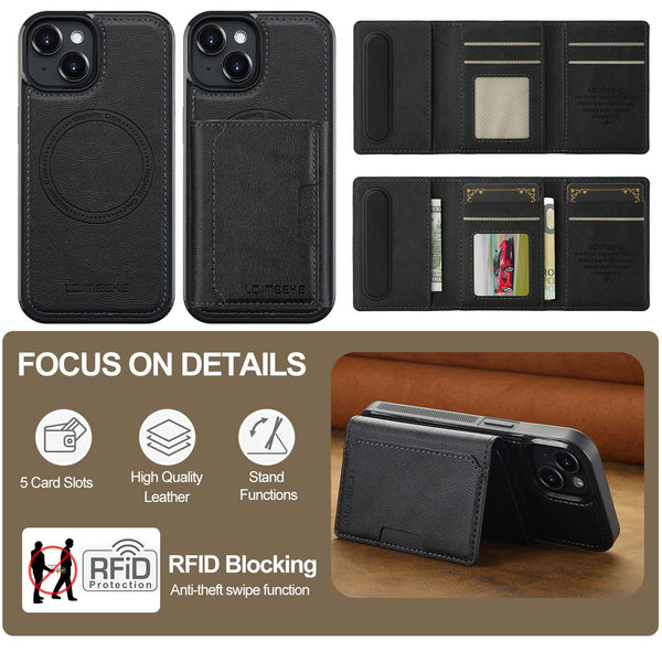 For iPhone 15 Plus / 14 Plus LC.IMEEKE L5 Series Detachable RFID Card Bag Magsafe Phone Case(Black)