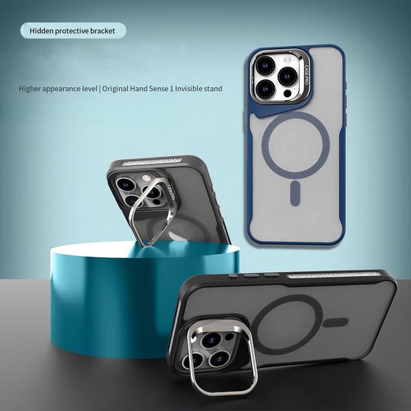 For iPhone 15 Plus / 14 Plus Metal Bracket MagSafe Magnetic Phone Case(Black)