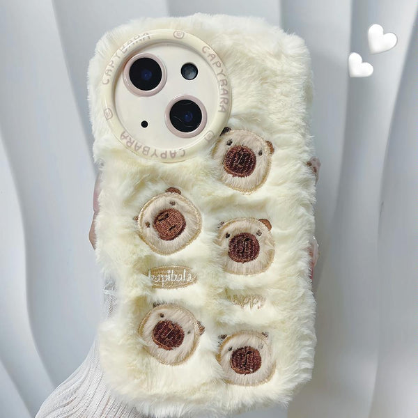 For iPhone 15 Plus Bear Plush Silicone Phone Case(Beige)
