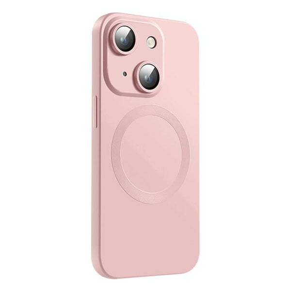 For iPhone 15 Plus CD Texture MagSafe Liquid Silicone Phone Case(Light Pink)