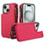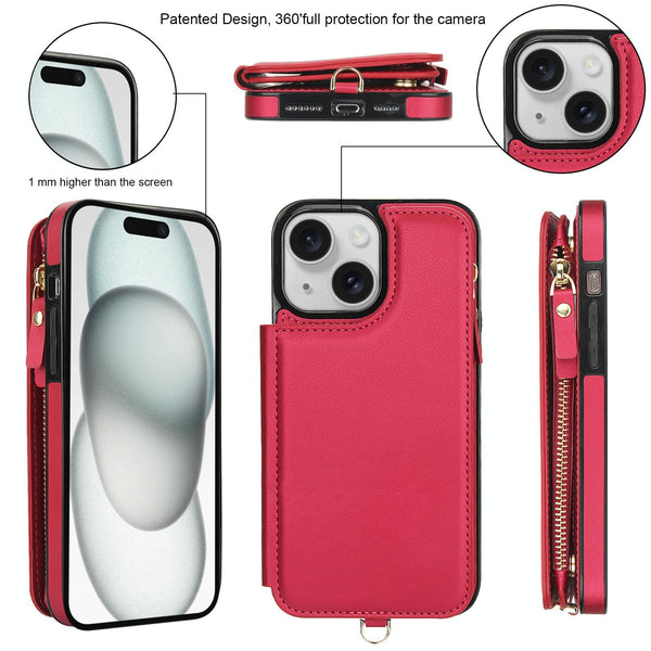 For iPhone 15 Plus Double Flap Zipper RFID Leather Phone Case with Short Lanyard(Red)