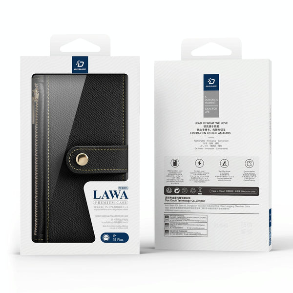 For iPhone 15 Plus DUX DUCIS Lawa Series 2 in 1 Wallet Zipper Detachable MagSafe Phone Case with Lanyard(Black)