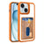 For iPhone 15 Plus Electroplated Card Bag Acrylic Hybrid TPU Phone Case(Orange)