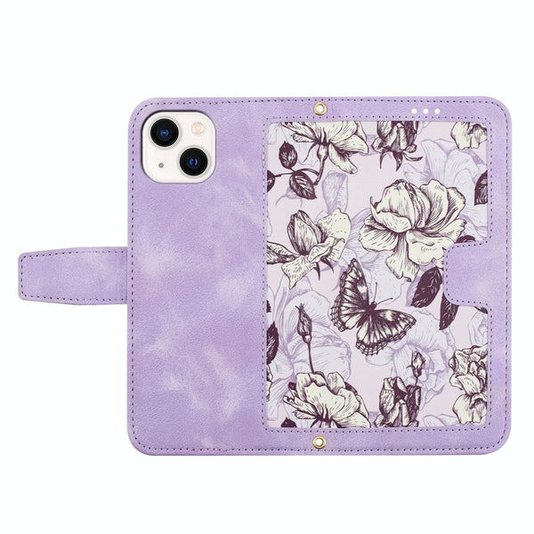 For iPhone 15 Plus Floral Pattern Leather Phone Case with Lanyard(Light Purple)