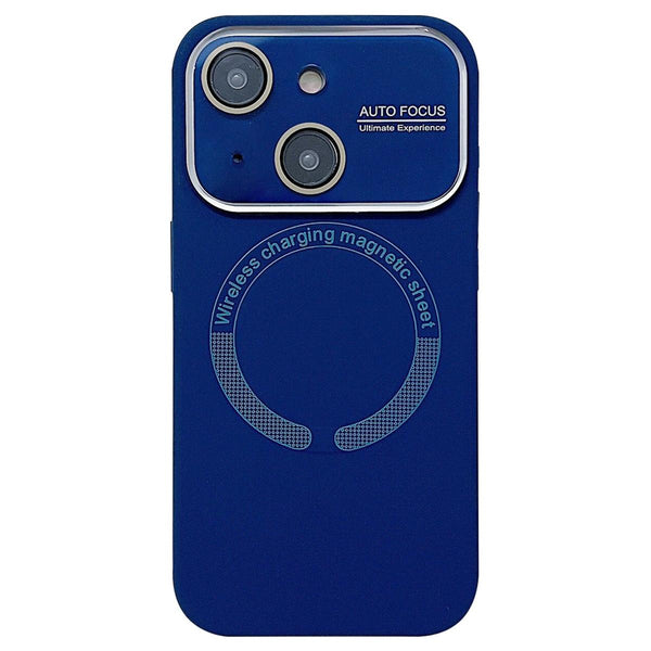 For iPhone 15 Plus Large Window Acrylic Glass Lens MagSafe Silicone Phone Case(Navy Blue)