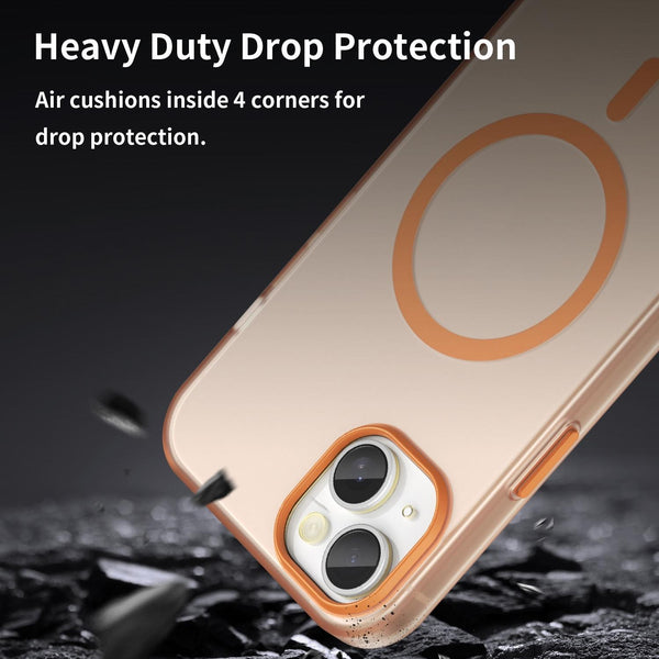 For iPhone 15 Plus MagSafe Frosted Translucent TPU + PC Full Coverage Phone Case(Orange)