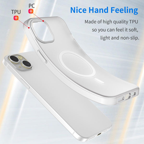 For iPhone 15 Plus MagSafe Frosted Translucent TPU + PC Full Coverage Phone Case(White)