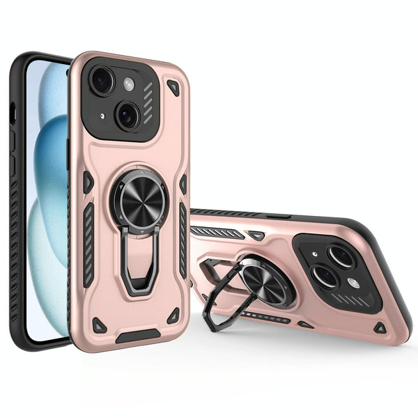 For iPhone 15 Plus Metal Rotating Bracket TPU + PC Magnetic Phone Case(Rose Gold)