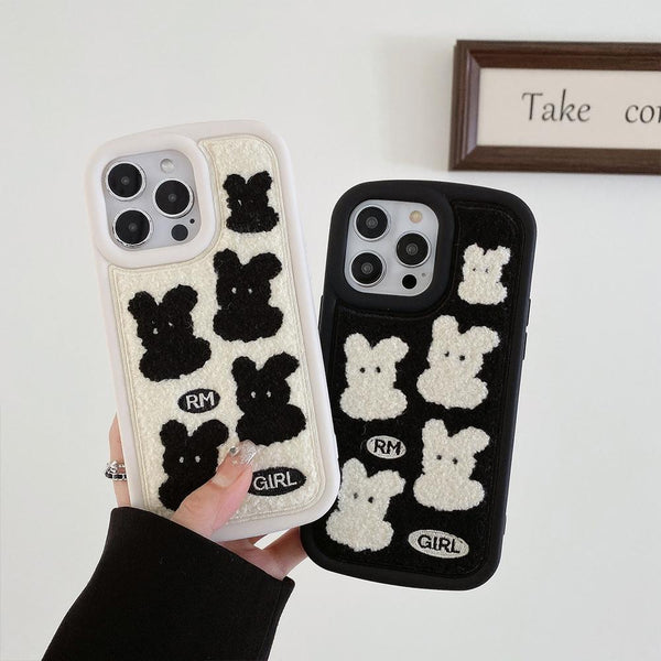 For iPhone 15 Plus Rabbit Plush Silicone Phone Case(White)