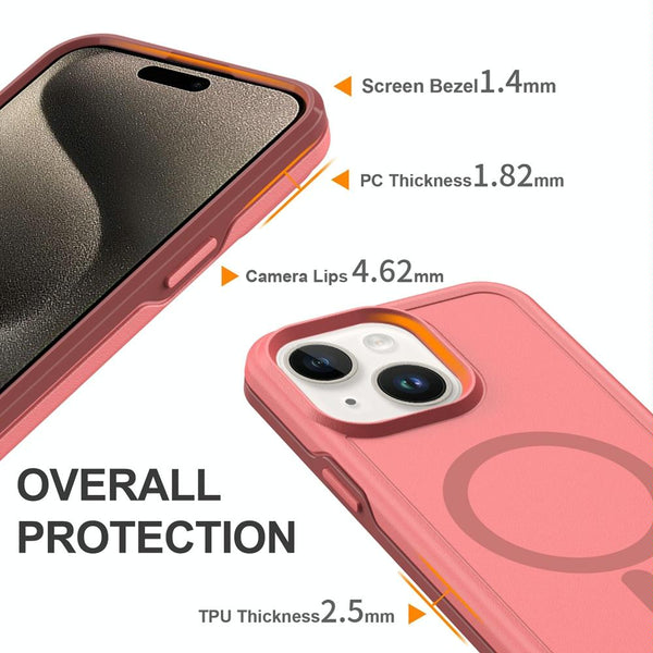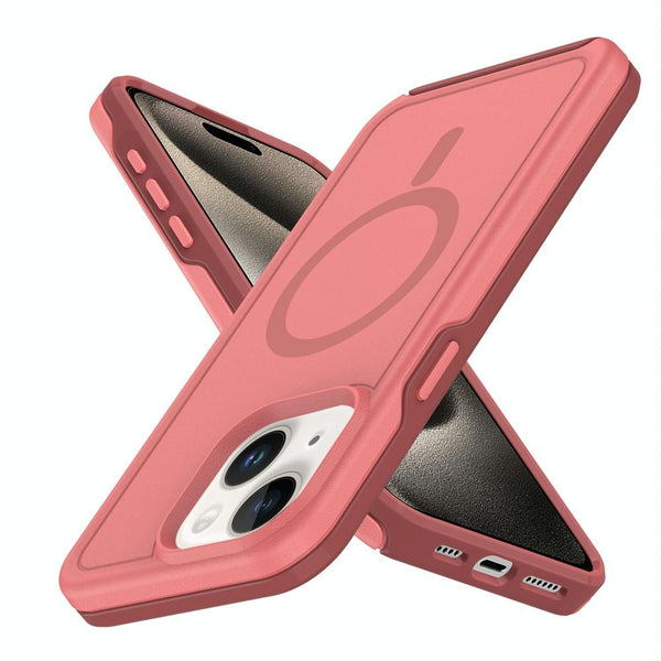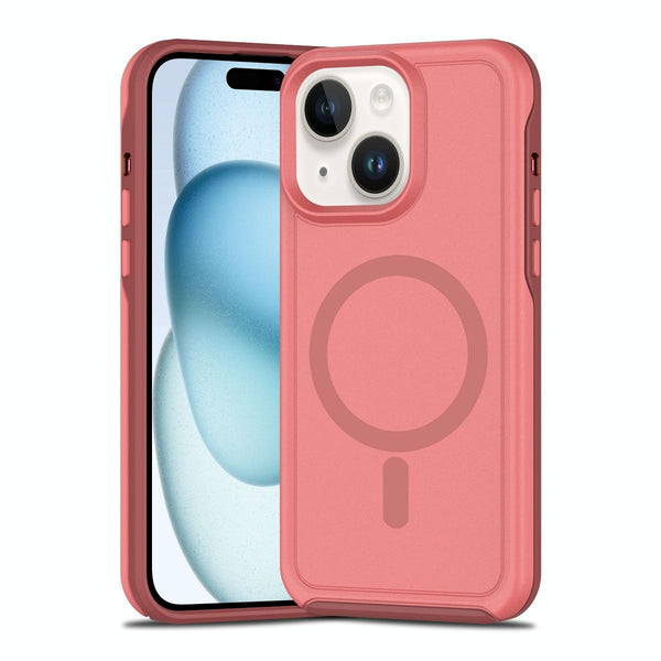 For iPhone 15 Plus Shockproof MagSafe Armor PC Hybrid TPU Phone Case(Dark Pink+Maroon)