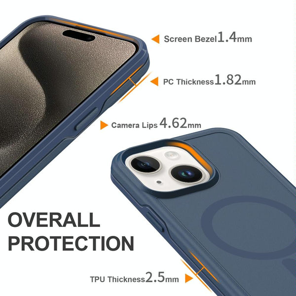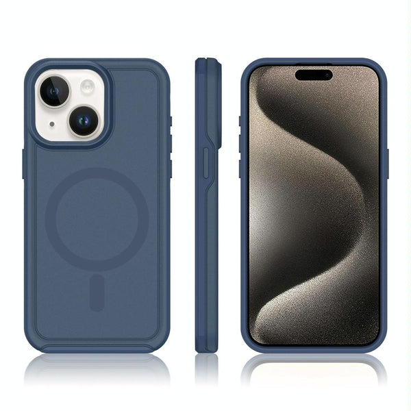 For iPhone 15 Plus Shockproof MagSafe Armor PC Hybrid TPU Phone Case(Ink Blue)