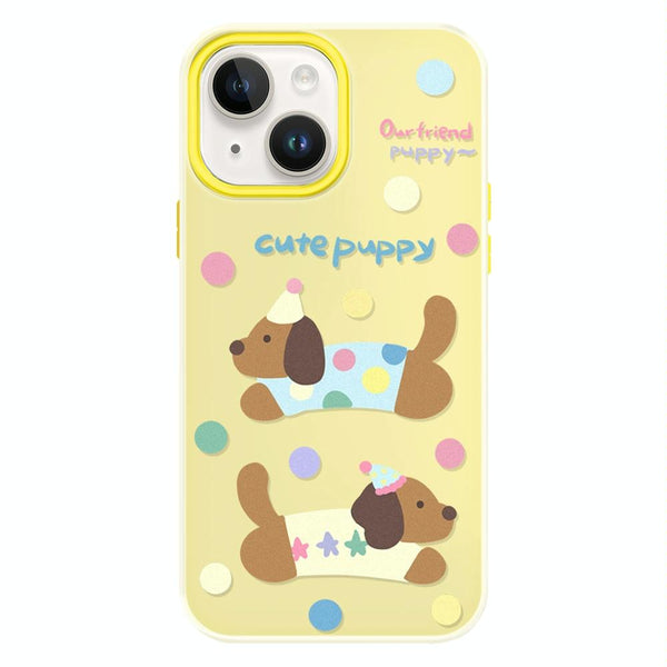 For iPhone 15 Plus Skin Feeling Jelly TPU Hybrid PC Phone Case(Cute Puppy Yellow)