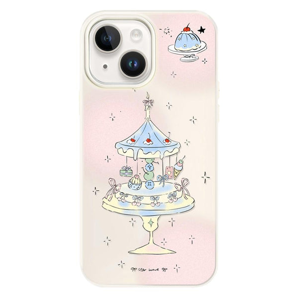 For iPhone 15 Plus Skin Feeling Jelly TPU Hybrid PC Phone Case(Dessert Cake Stand White)