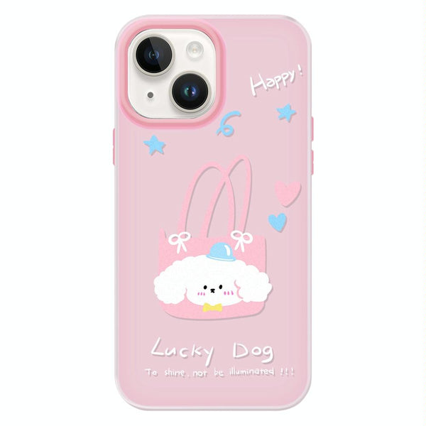 For iPhone 15 Plus Skin Feeling Jelly TPU Hybrid PC Phone Case(Dog Tote Bag Pink)