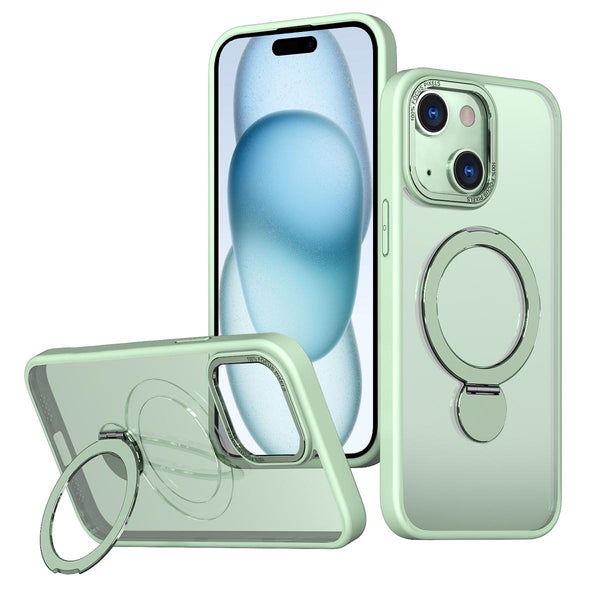 For iPhone 15 Plus Wing Series Gen2 MagSafe Metal Ring Holder Phone Case(Avocado Green)