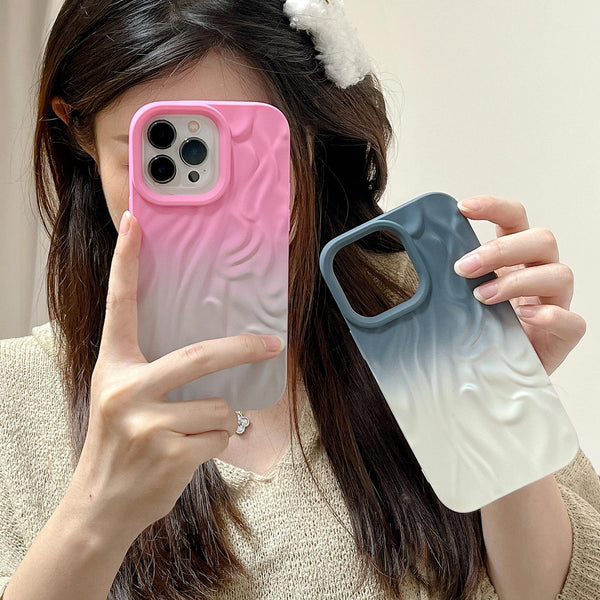 For iPhone 15 Plus Wrinkle Gradient Skin-feel Frosted TPU Phone Case(Blue White)