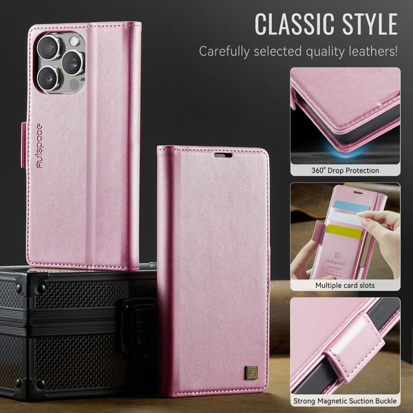 For iPhone 15 Pro AutSpace A11 Side Buckle MagSafe Magnetic RFID Phone Leather Case(Rose Gold)