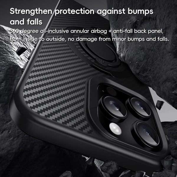 For iPhone 15 Pro Carbon Fiber MagSafe Phone Case with 360 Degree Rotating Holder(Black Silver)