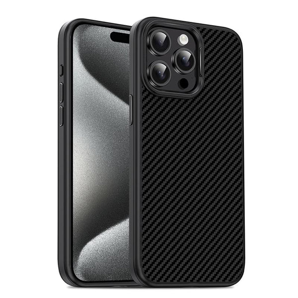 For iPhone 15 Pro Carbon Fiber Textured Oil Spray MagSafe Magnetic Phone Case(Black)