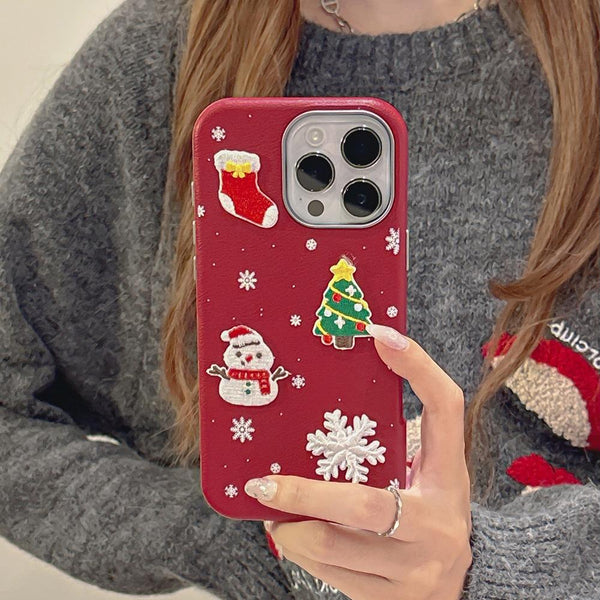 For iPhone 15 Pro Christmas Series Frosted PC Hybrid TPU Leather Phone Case(3D Christmas)