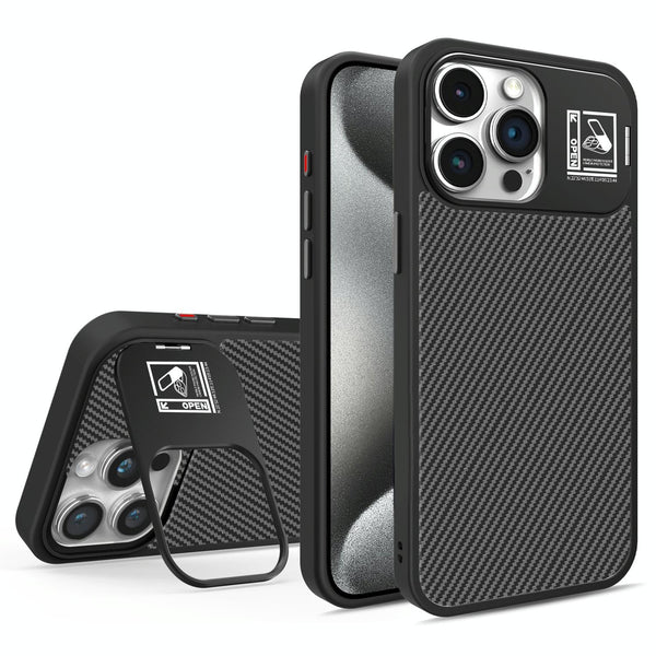 For iPhone 15 Pro Folding Holder Carbon Fiber MagSafe Phone Case(Black)