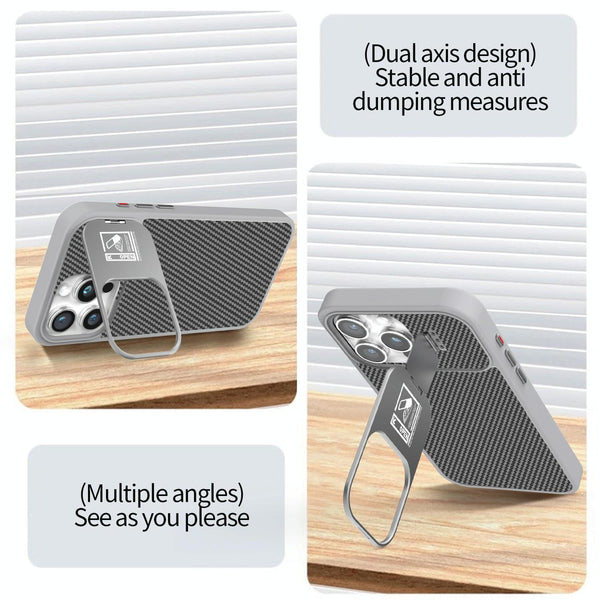 For iPhone 15 Pro Folding Holder Carbon Fiber MagSafe Phone Case(Grey)