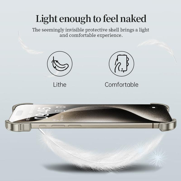 For iPhone 15 Pro Frameless Metal Corner Pad Phone Case with Lens Film(Black)